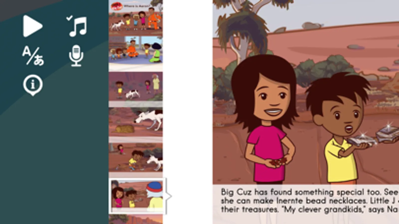 Where is Aaron? is an interactive storybook based on an episode of Little J & Big Cuz, the first animated kids show to feature Indigenous Australians and their culture.