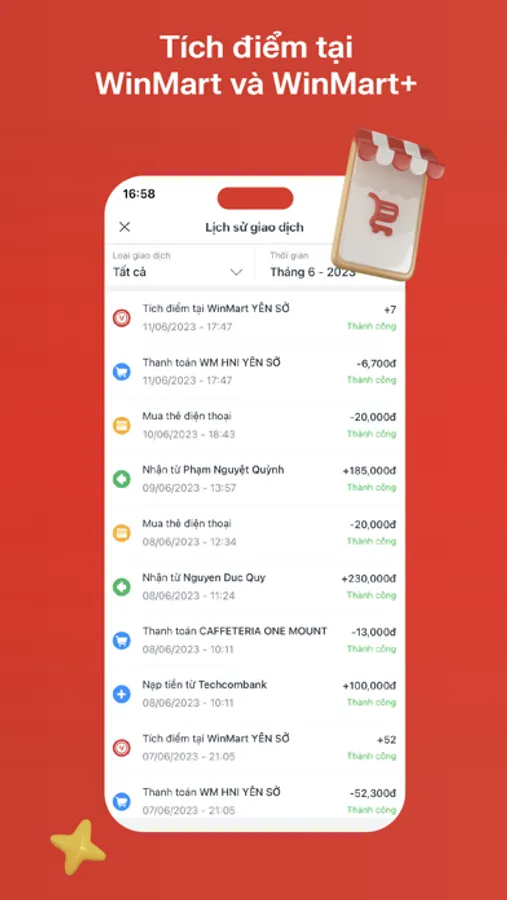 + Tích điểm cho mọi giao dịch từ 1,000đ khi đi chợ WinMart/WinMart+