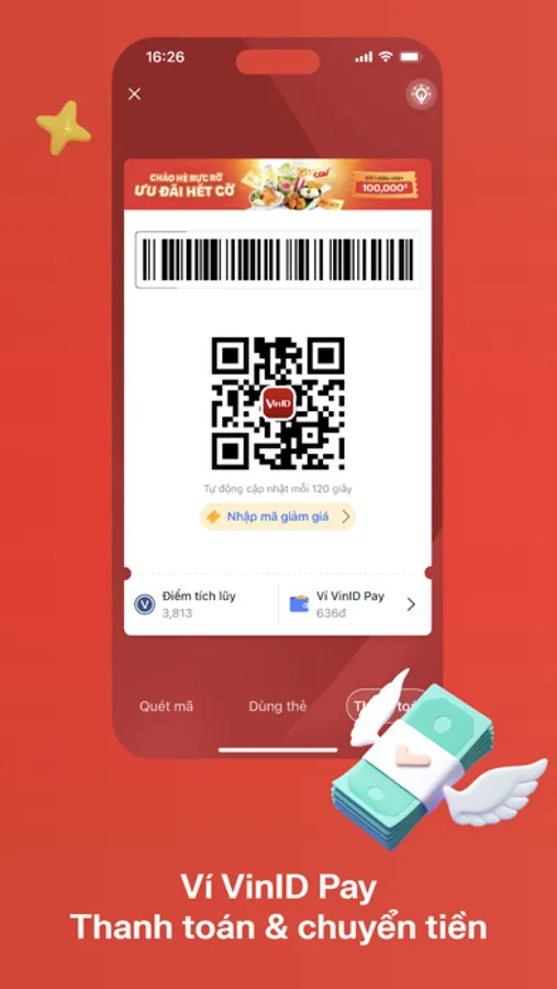 + Sử dụng ví điện tử VinID Pay thanh toán tiện lợi, chuyển tiền miễn phí, bảo mật chuẩn PCI DSS