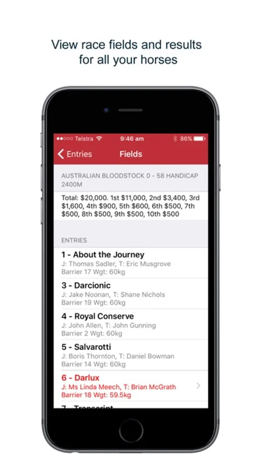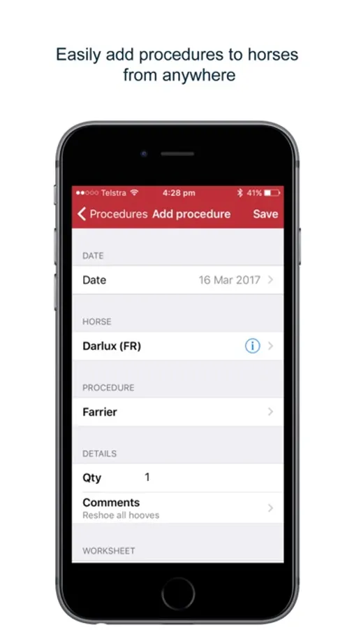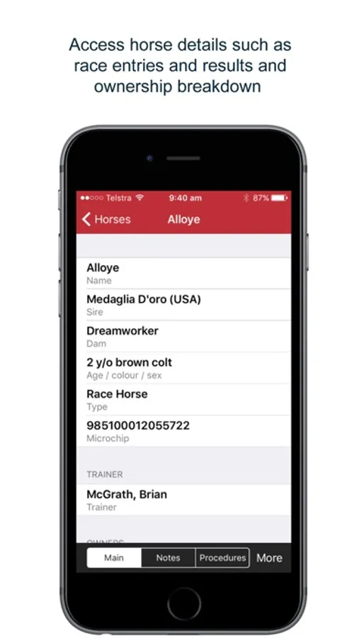 • Record procedures to horses and review breeding, racing, vet and farrier history for any horse on your farm