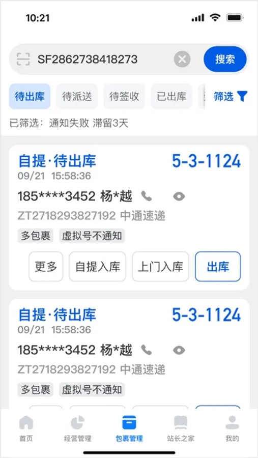--查件服务:可按照手机号、运单号、提货码进行查件,支持扫码和手动输入方式,精准查询且配合相关后续操作动作;操作节点系统展示、全程跟踪、安全无忧;