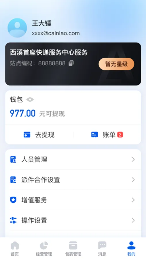 --数据中心:可展示站点代收业务数据,让站点可直观知晓业务开展情况,后续将陆续开放更多可视化的数据;