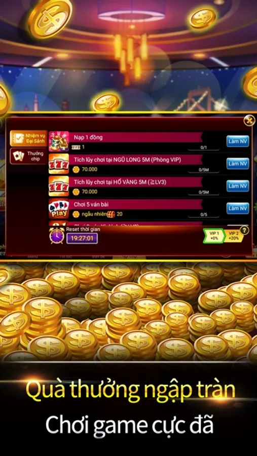 。 Tặng chip nhiều nhất: Cào trúng thưởng, mời bạn bè cùng chơi, đăng nhập hàng ngày đều được tặng chip miễn phí (mien phi)!