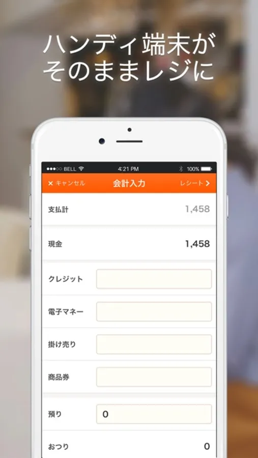 また、ハンディ自体をレジとしても利用できる機能も搭載しています。