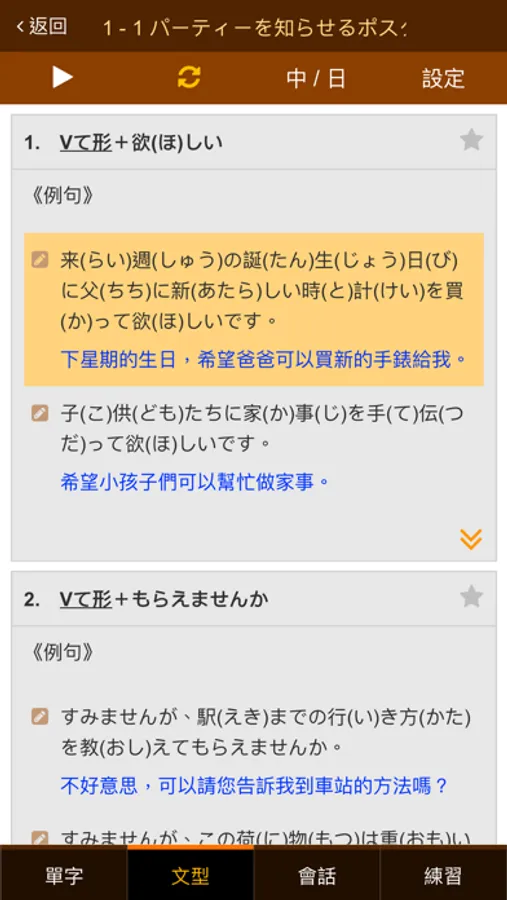 能隨時收錄個人單字和文型,讓您可以快速複習。
