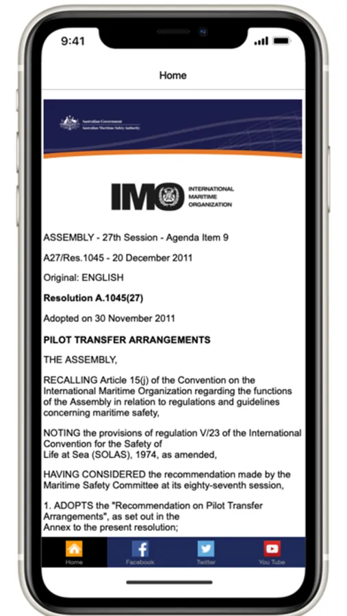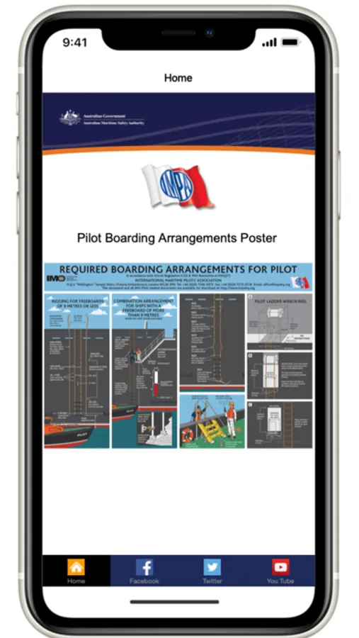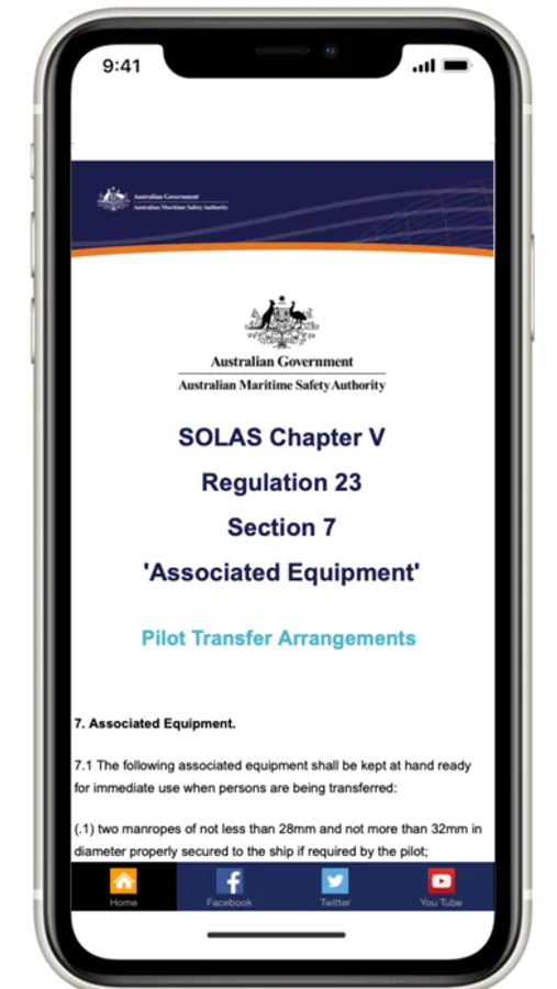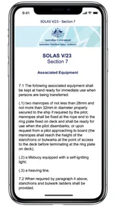 Many useful information resources regarding pilot transfer arrangements are contained in the App including the IMO Pilot Boarding Poster, IMO Resolutions, ISO 799, relevant Marine Notices etc.