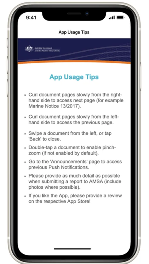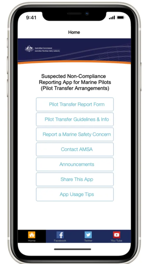 The App assists Australian marine pilots to easily notify AMSA where non-compliance with pilot transfer requirements is suspected.