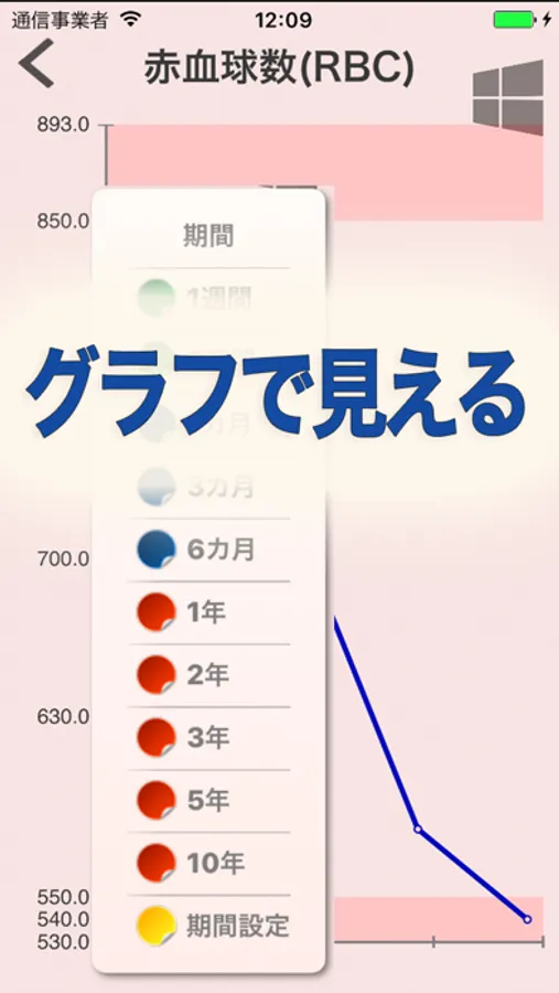 1週間、2週間、1カ月、3カ月、半年、1年、3年、10年のからだの変化をグラフで確認できます
