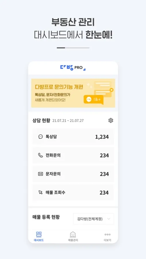 다방프로는 다방을 이용하는 모든 공인중개사님을 위한 매물 관리 앱입니다.