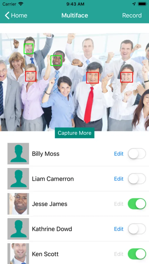 • Multiple face detection - detect and recognize faces of all the people seen in the picture