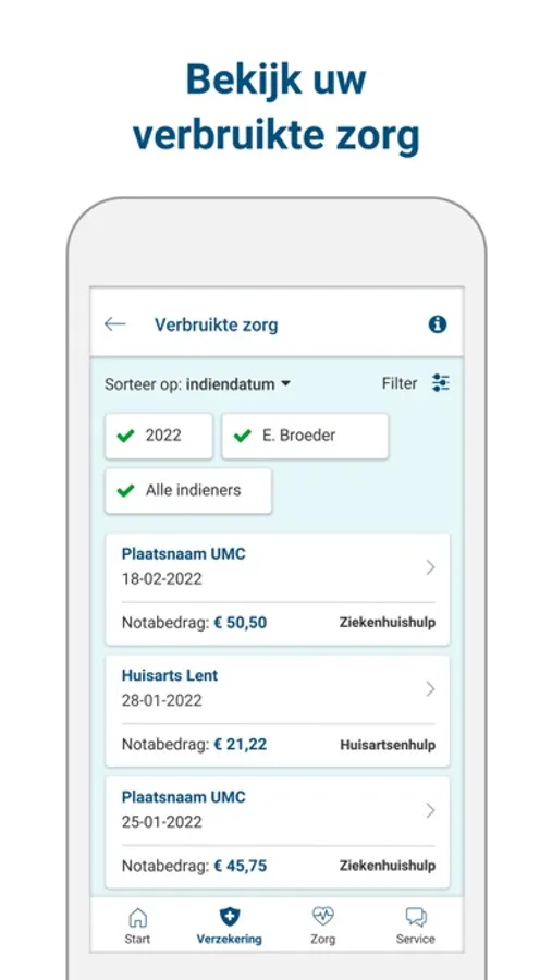 - Uw persoonlijke zorgpas en de gegevens van uw polis altijd bij de hand