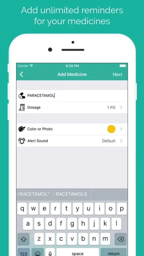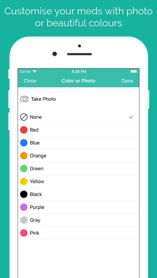 - Customise your medicine by defining specific color or even select photo and assign to medicine.
