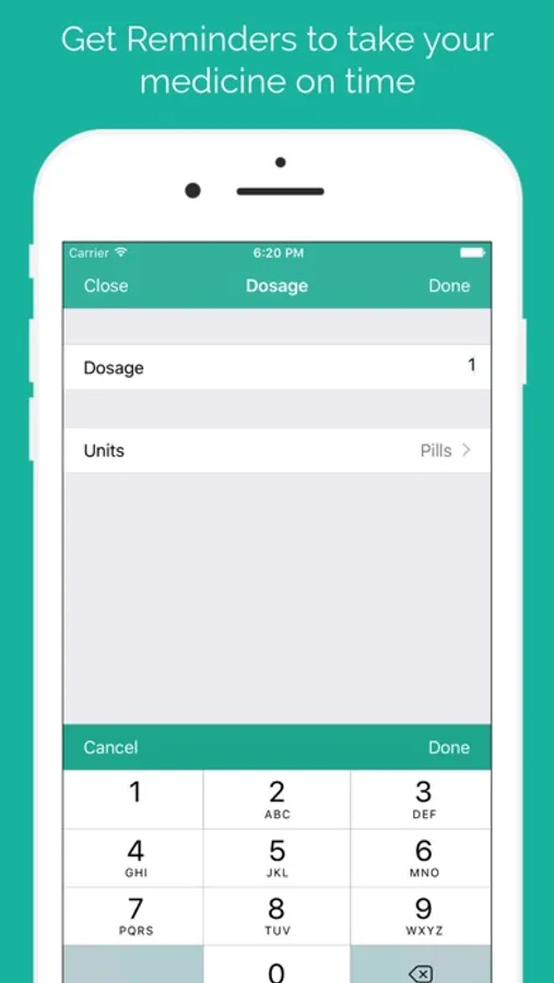 - Option to set Medication units such as pills, cc, ml, gr, mg, Drops, pieces, units or spray.