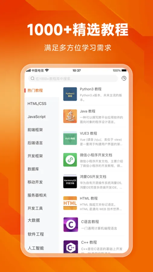 7、1000+免费编程教程库,想学什么搜什么;