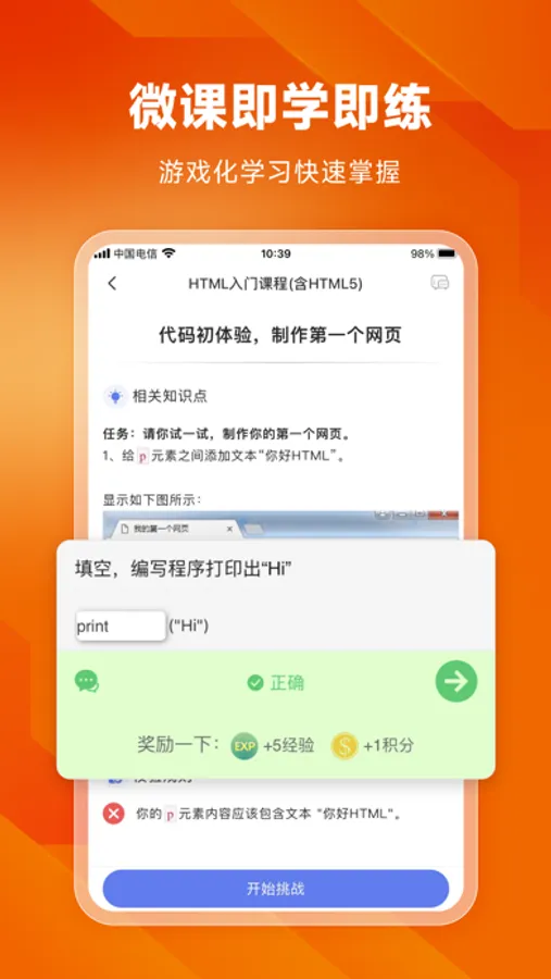 零基础学编程,从w3cschool开始,我们通过边学边练,像玩游戏一样闯关实践的方式学习,有趣又充满挑战。