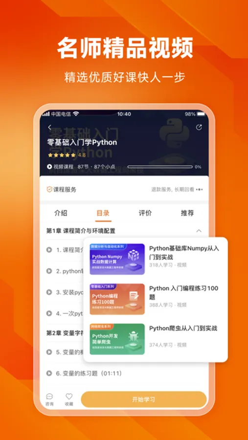 1、20+ 编程微课,边学边练,随时随地学编程;