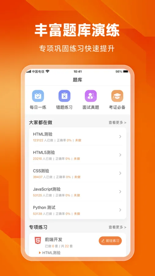 5、200+编程训练题库,随时随地刷题巩固编程知识;