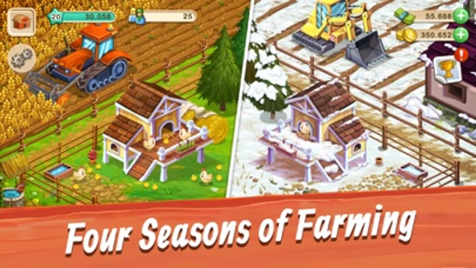 *Manage your farm village: Distribute your crops after each planting cycle, sow seeds, water your plants, feed your animals, make clever deals in the farm marketplace, and collect rewards.