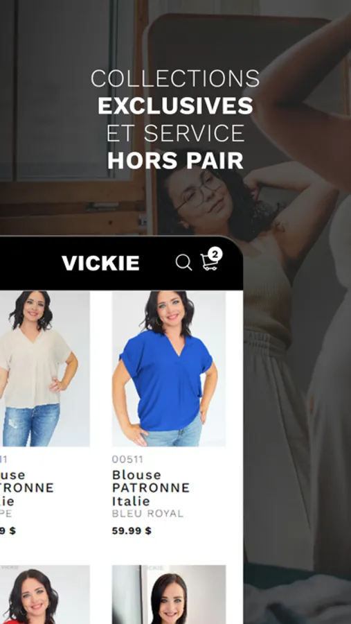 Découvrez la collection VICKIE et ses essentiels modes pour la femme avec l'application VICKIE. Une façon simple de naviguer parmis la crème des articles de mode minutieusement sélectionnée par notre équipe. Porter la ligne de vêtements de la collection VICKIE encourage les talents d’ici, puisque la collection est entièrement pensée et fabriquée au Québec.