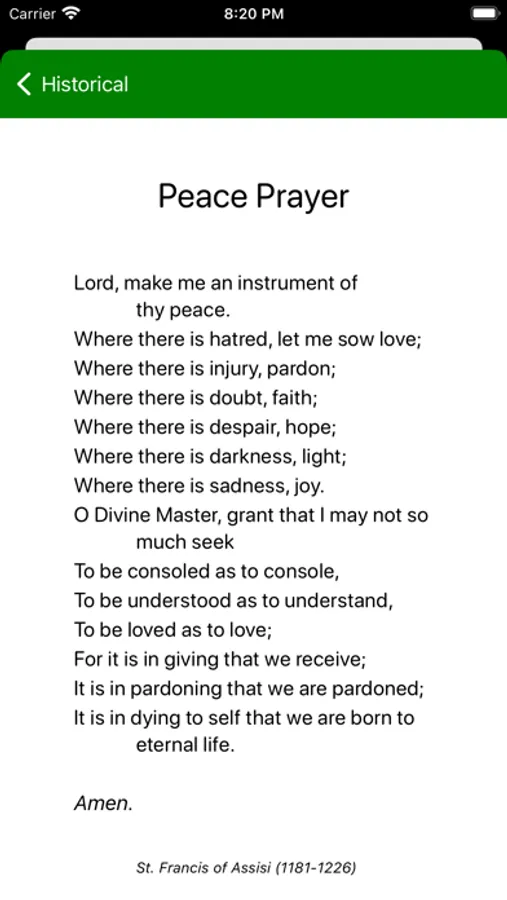 • Historical prayers such as The Prayer of St. Francis of Assisi