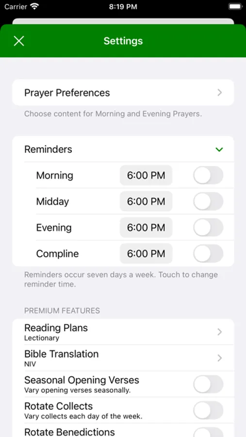 Subscriptions: Premium Features are available through auto-renewing subscriptions. By subscribing to Premium Features, the user will have access to the Two-Year Daily Office Lectionary, additional features described above, and any Premium Features added in future versions of My Daily Office.