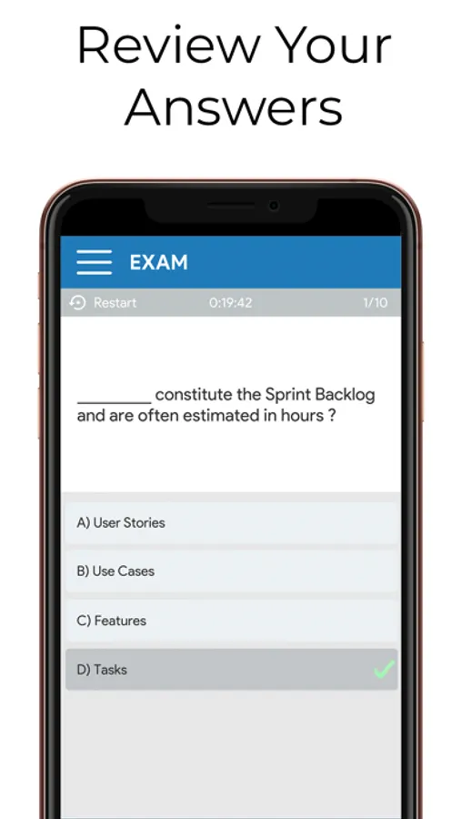 Scrum Tester comes with a huge pool of Scrum framework questions. The normal Scrum guide is 16 pages long but it is quite possible to generate many questions out if it. Students often fail the exam if they study only by reading the guide. Therefore, we created this app to help students succeed. If you use Scrum Tester frequently and achieve a minimum of 85% on all the exams you take, then you can easily beat the real exam.
