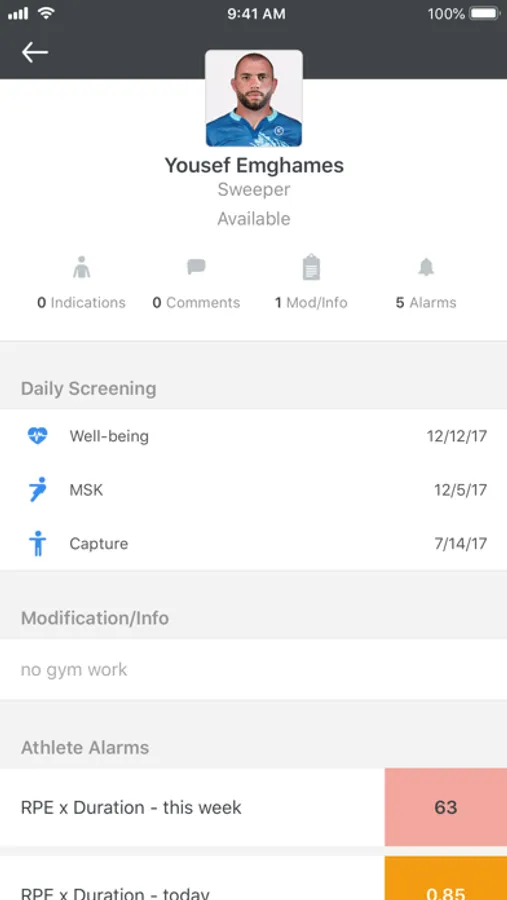 • View alarms for an athlete