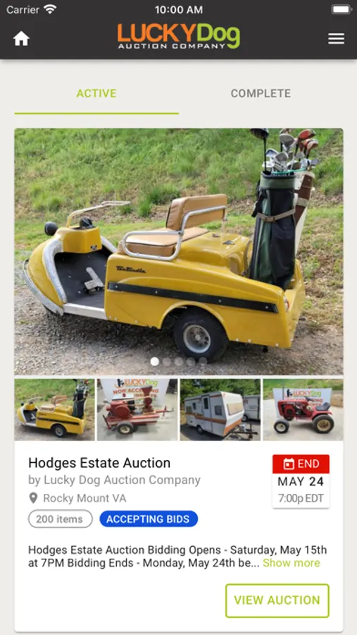 The official mobile app for Lucky Dog Auction Company. Our experienced staff helps customers sell items from their home or place of business through our organized system of checks and balances. This dynamic app allows you to (1) stay informed about our upcoming auctions; (2) watch items that interest you; (3) get notifications when you’ve been outbid; (4) bid in our auctions no matter where you have to be (or set and forget your maximum bid to let our platform automatically bid the lowest possible winning bid for you). This is the go-to-source for up-to-the-minute information on all of Lucky Dog's auctions.