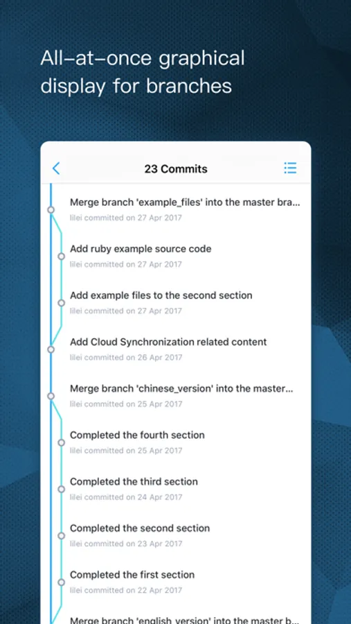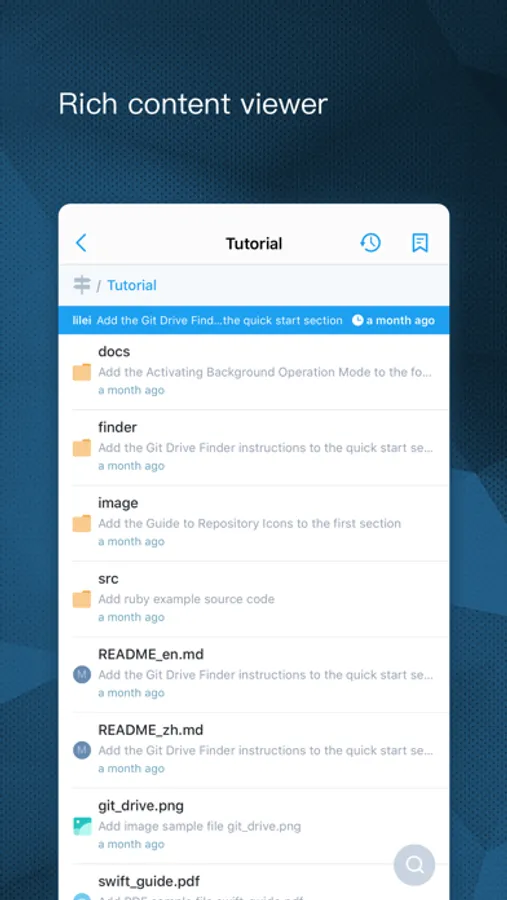 The repository pushed from your PC to GitDrive will be automatically synced to iCloud. As a result, it turns the iOS device already in the palm of your hand into a Git-enabled mobile hard drive!