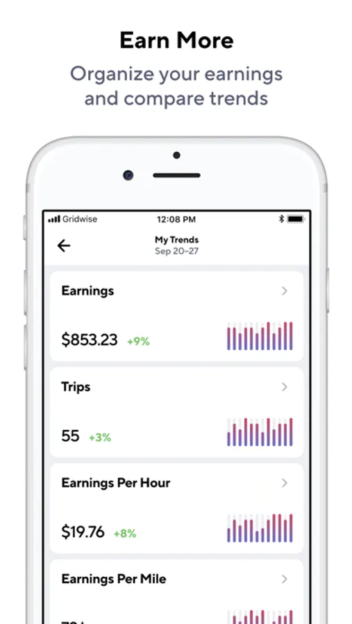 Organize all your earnings in one place so you can compare them to other drivers in your area, monitor which services are most profitable, and find opportunities to earn more efficiently.