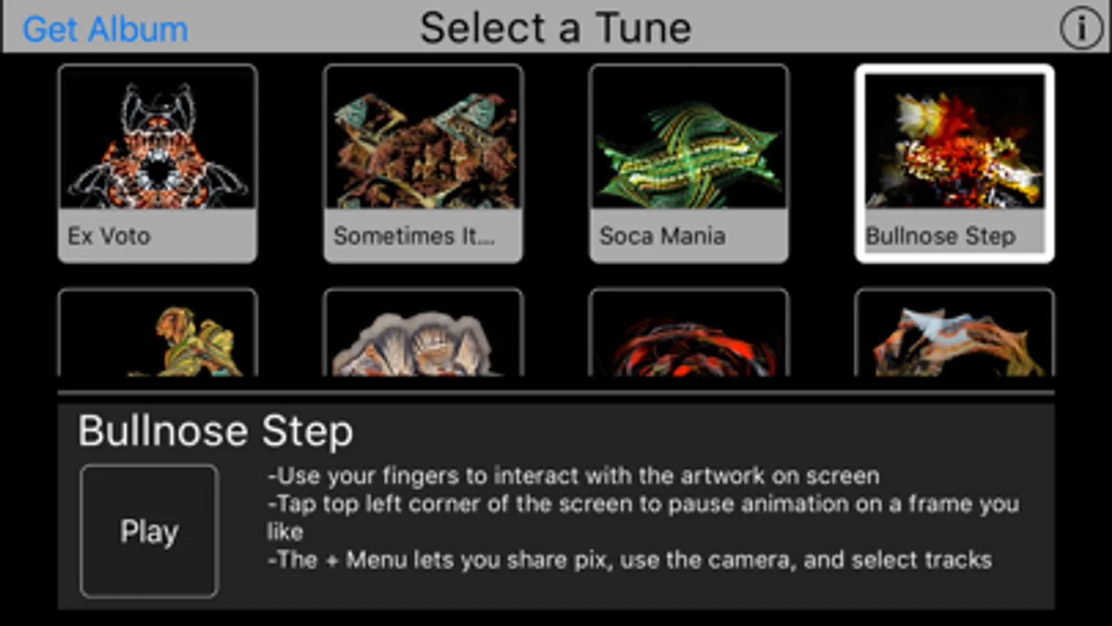 So the main Pixi app is a modular synth which we have used to create a set of interactive visual presets which can be used in smaller Pixi Player apps. This Bogus Order app is a Pixi Player which uses music from the Zen Brakes 2 album, each track having a Pixi preset.