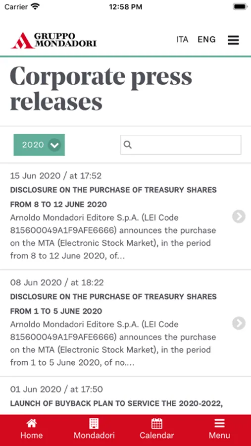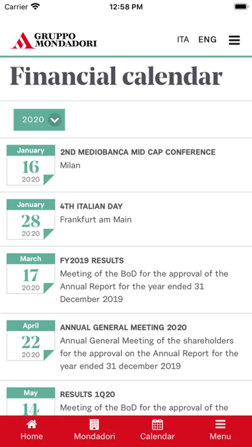 The App is available in English and Italian versions. Download the Mondadori Group IR App for free on the App Store.
