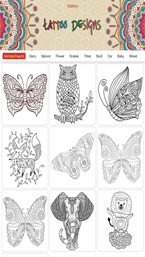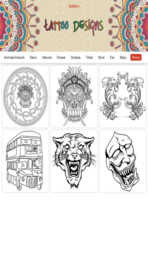 Tattoo Designs App let's you create the colors of your tattoo before you get it done on your skin. Now we have many categories. If you have a specific tattoo design you want us to add, email tom@tbltechnerds.com and we will add it !