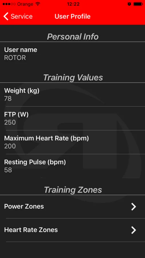 SERVICE: Pair your power and heart rate sensors, set your user profile, choose the language, and set the metrics system.