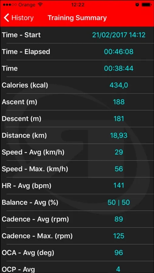 HISTORY: Take a look to the training summary at any time after the ride.