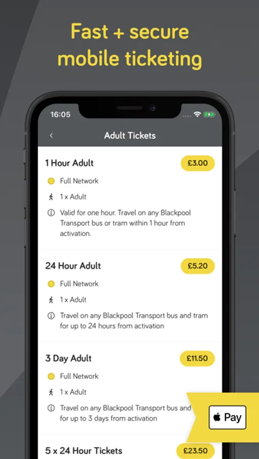 Mobile Tickets: Purchase mobile tickets securely with a debit/credit card or Apple Pay and show the driver/conductor when boarding - no more searching for cash!