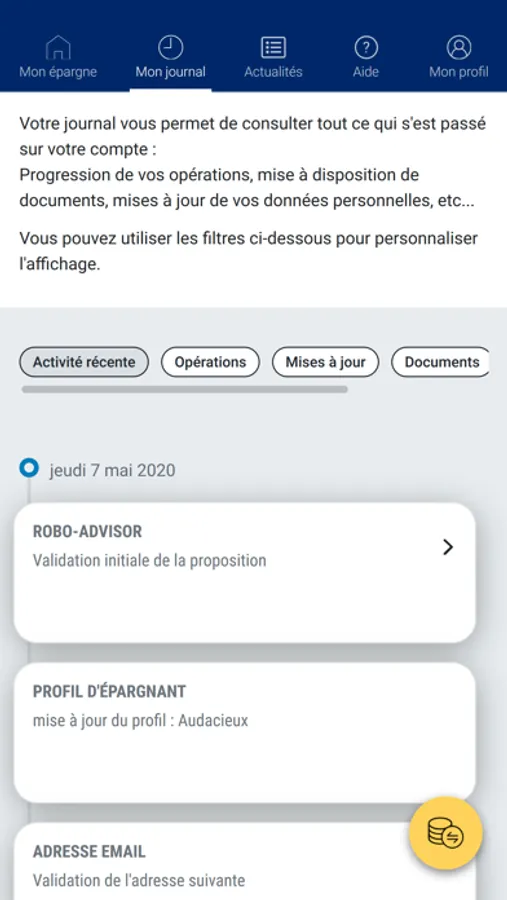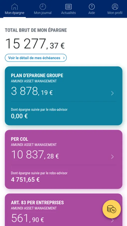 - Le détail complet de vos plans d’épargne et l’historique de vos opérations