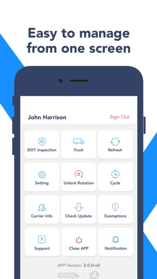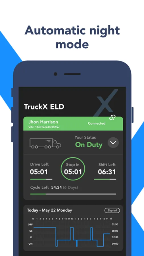 TruckX is the best ELD for Owner Operators and Small Fleets! Trusted by over 50,000 drivers and FMCSA Approved. Manage your HOS logs on your phone. Transfer ELD logs to DOT's eRODS system or Print/View at a roadside inspection in spotty or offline mode.