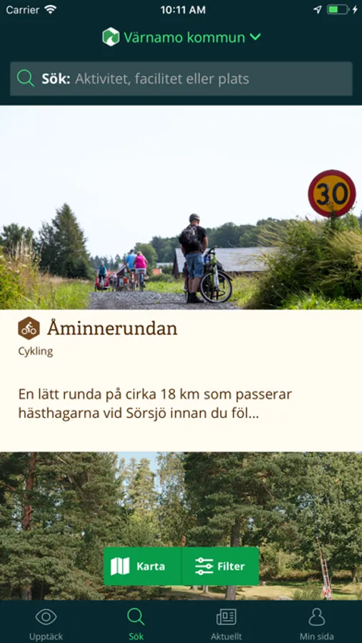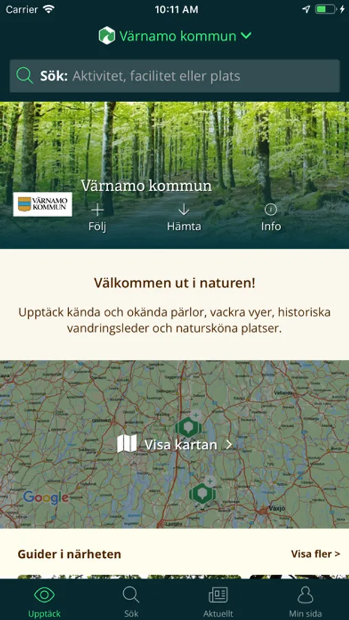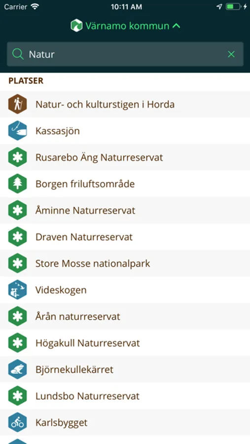 Värnamos Naturkarta gör det enkelt för dig att hitta information och tips om besöksvärda platser i Värnamo kommun. Du kan utgå från själva kartan eller vilken typ av utflyktsmål du är intresserad av, till exempel vandringsleder, badplatser, fågelskådning eller klättring.