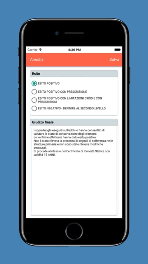 - rispondi alle check-list e compili i campi descrittivi necessari