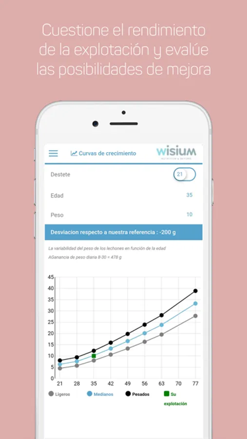 Thanks to its post-weaning growth curves modeled by Wisium, Piglet Pocket enables you to challenge farm performance and evaluate the potential of improvement.
