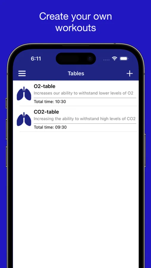 First, determine the maximum breath holding time for this moment, the application automatically calculated tables based on this best time. Then using training plan do the tables and other exercises from apnea trainer (see detailed how-to guide in app)
