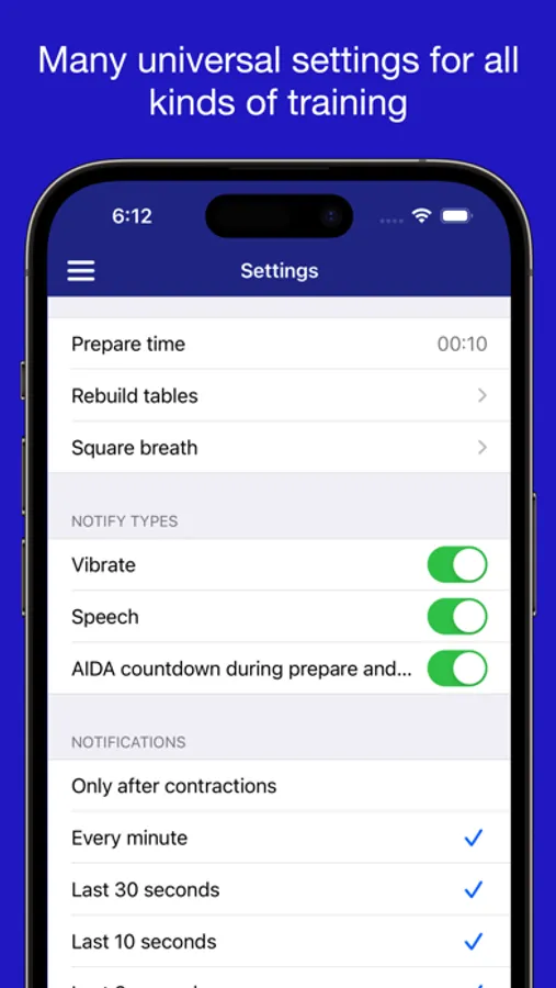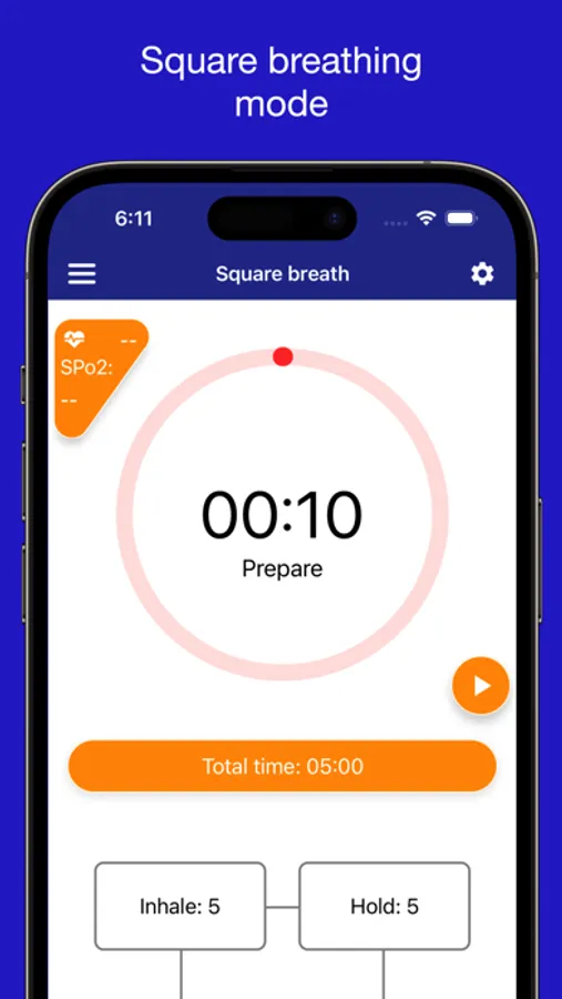 - Flexible "Square breath" training timer for preparing and relaxation