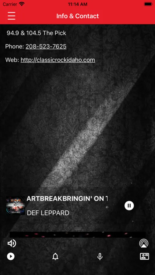 94.9 & 104.5 The Pick everywhere you go! You’ll hear the greatest rock ever made from the greatest bands in rock. See current and recently played songs and up to date station and local news on a single screen. - Wake up to your favorite station with our alarm clock. - Fall asleep while listening to your favorite station - Real time weather for where you are. - Share our app via Facebook, Twitter, and e-mail.