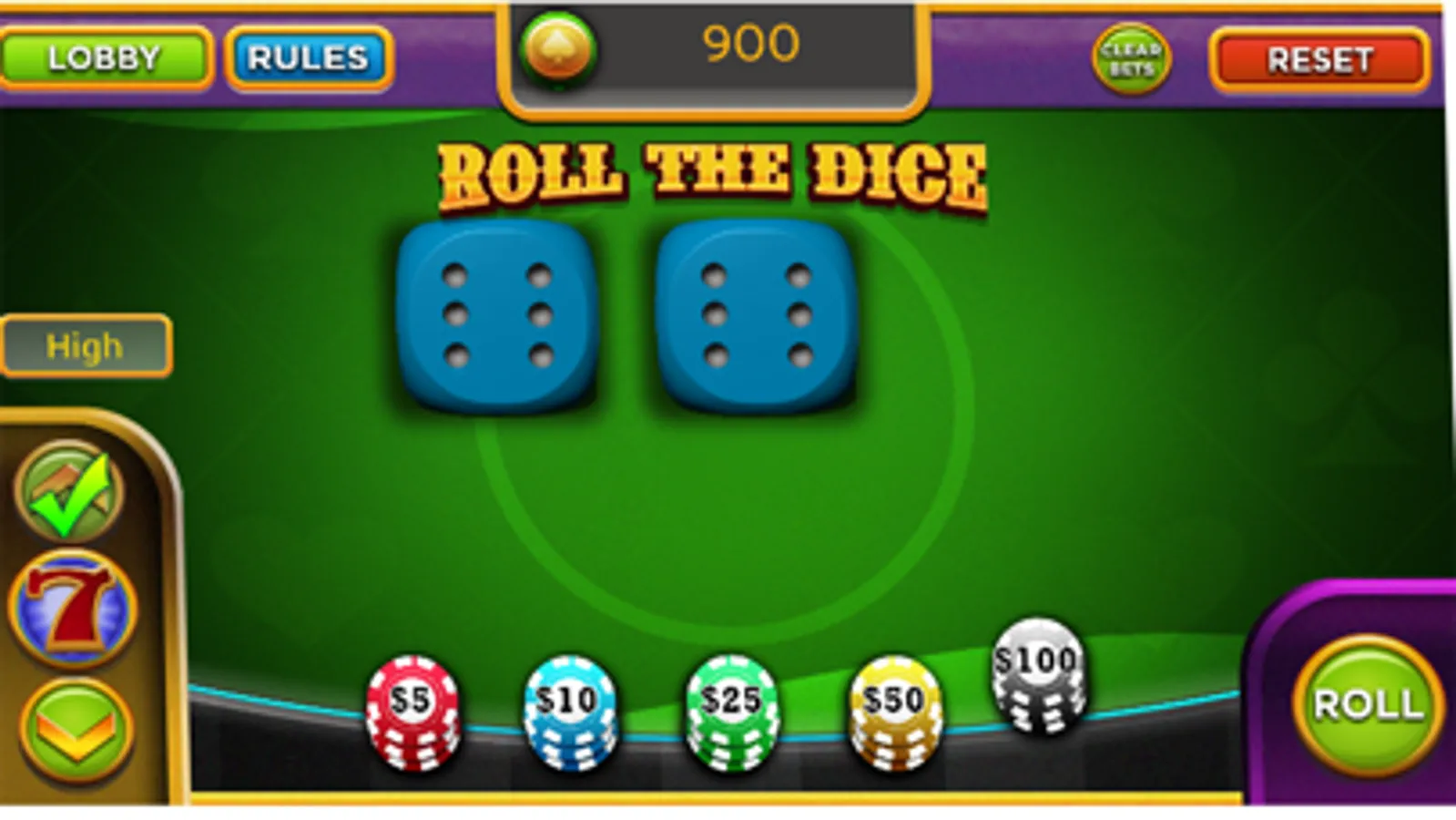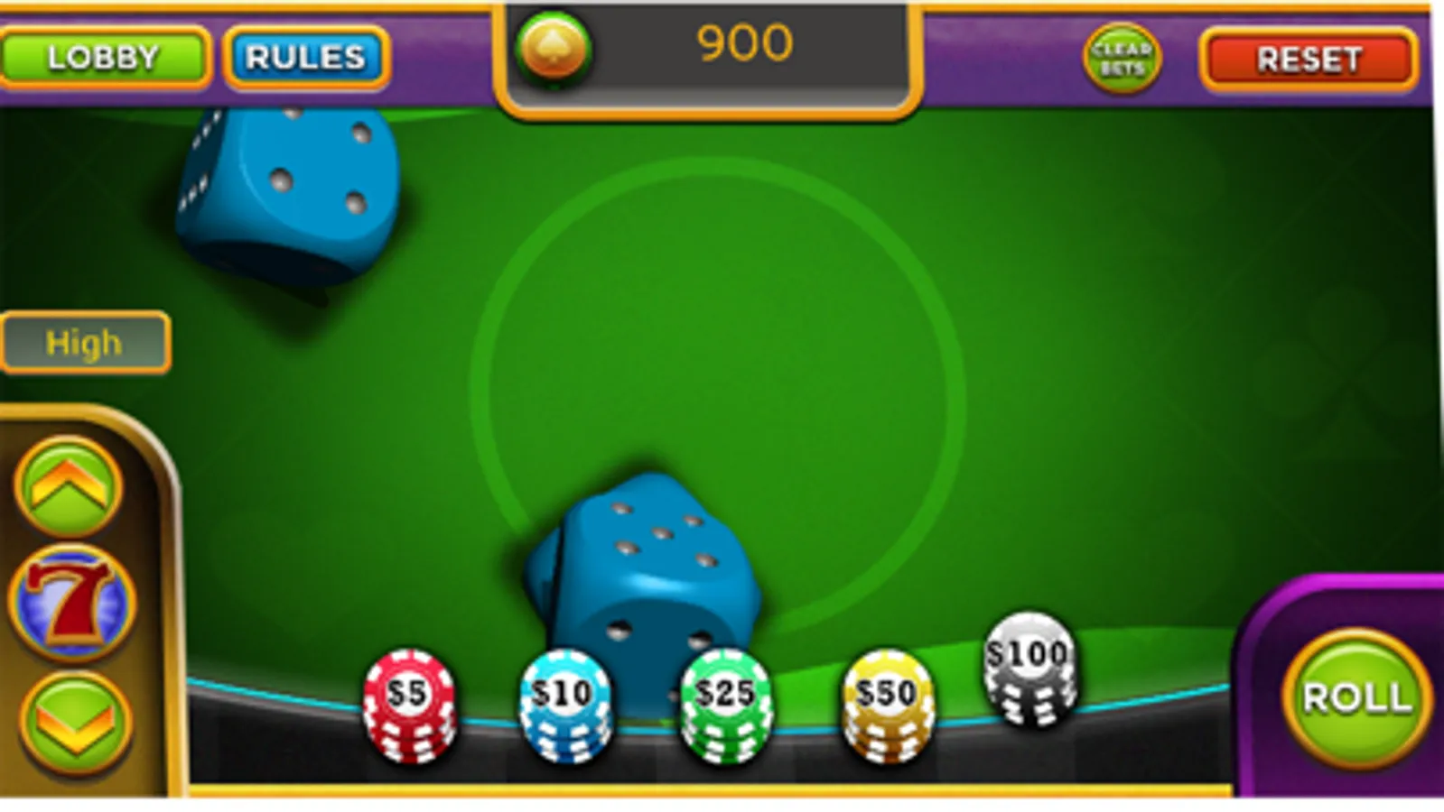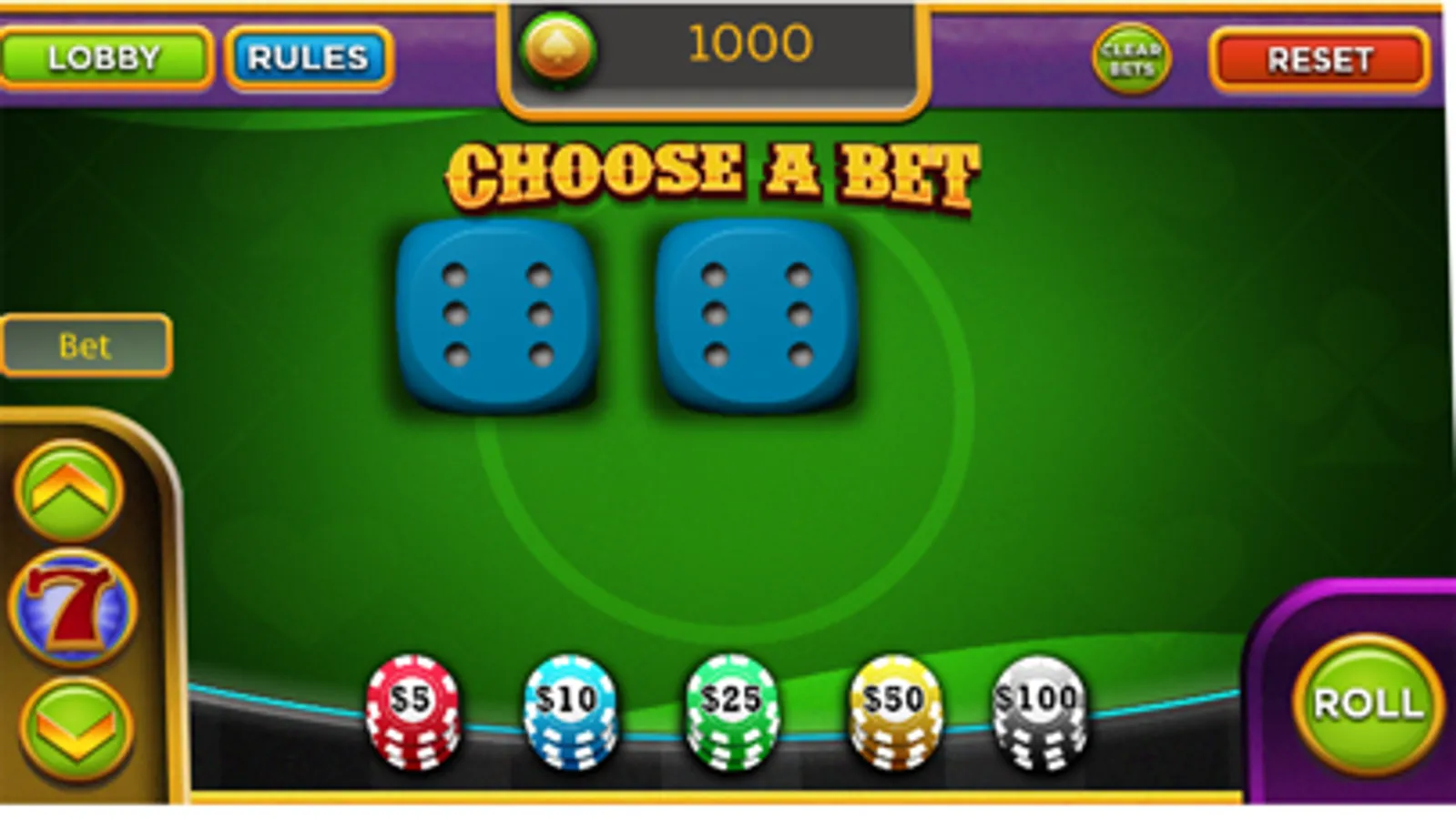 The rules of playing craps are so simple that you’ll get the whole idea after playing for a few times. First of all, you need to specify the bet; Do you think the sum of dices will be more than 7? Do you think the sum of the dices will be less than 7? Or do you think the sum of dices will be equal to 7? The payouts vary based on the type of bet you specify and can be from 2:1 to 4:1. After that, it’s time to place your chips on the table; the amount of the bet varies from $5 to $100. Once you choose the bet and specify the amount, it’s time to hit the Roll button and let the fun begins. Depending on the outcome of the roll, the bet and its payouts, you’ll win or lose certain amount of coins at each round.