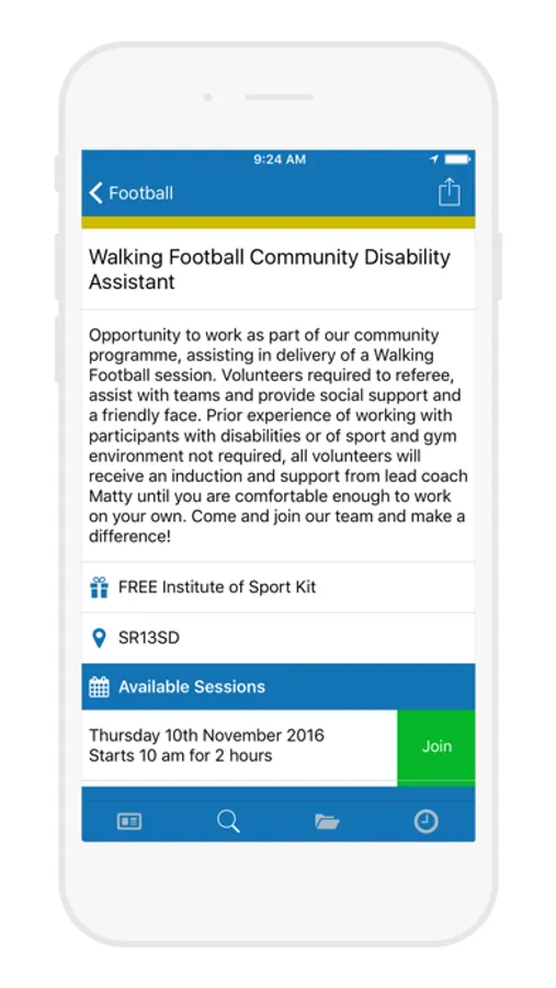 Use the app to quickly find opportunities, join up and join in. You can log your hours and thumbs up feedback and progress through our volunteer award system.