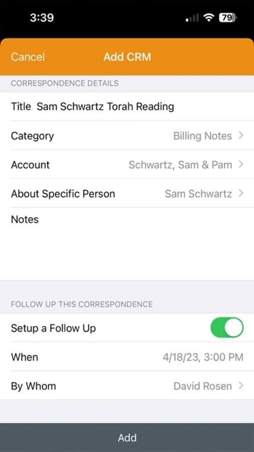 - CRM: Keep track of important member events and notes with the CRM functionality in the app. Set follow up reminders and more.