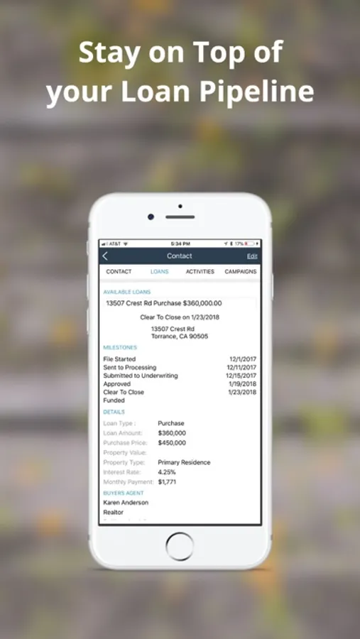 Receive live push notifications on your phone based on contact and loan trigger events.
