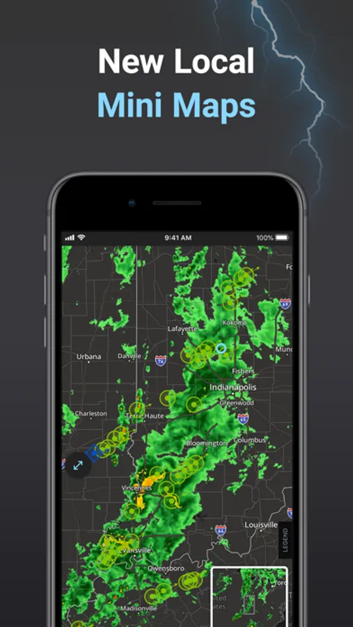 - Use our Mini Map to get two important views in one radar screen: see what is happening in your location, while also having access to a big picture view in the mini map.