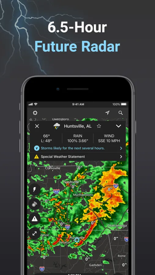 - Be aware of hazardous lightning strikes: get live lightning alerts for your location.